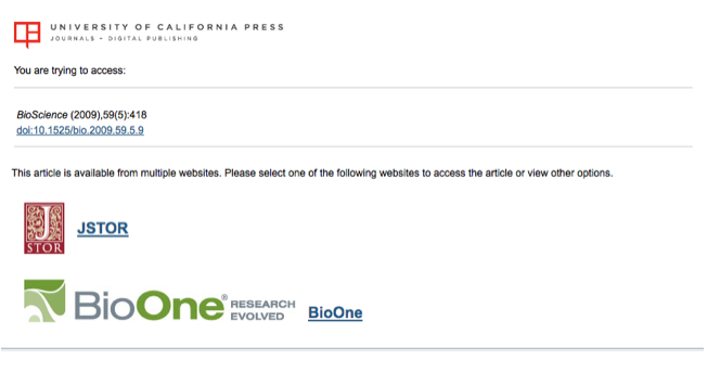 Figure 5-1: Journal article available from two web sites: JSTOR and BioOne